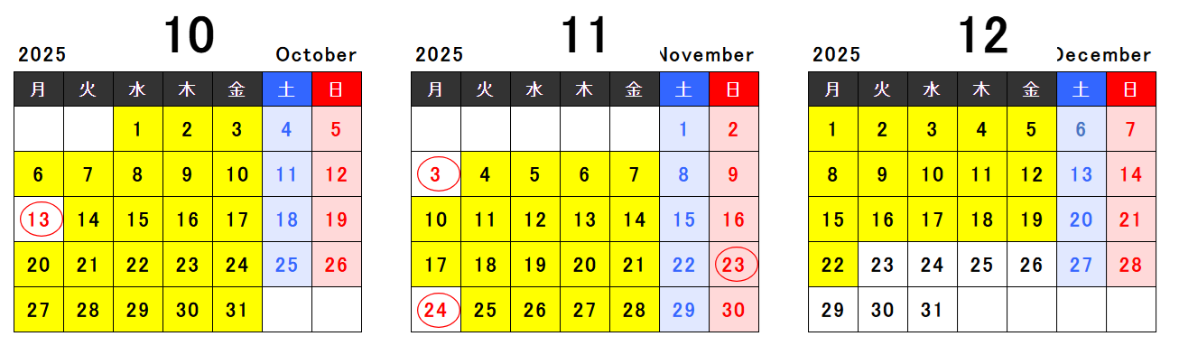 • レッスンスケジュール(2025年10月-12月)